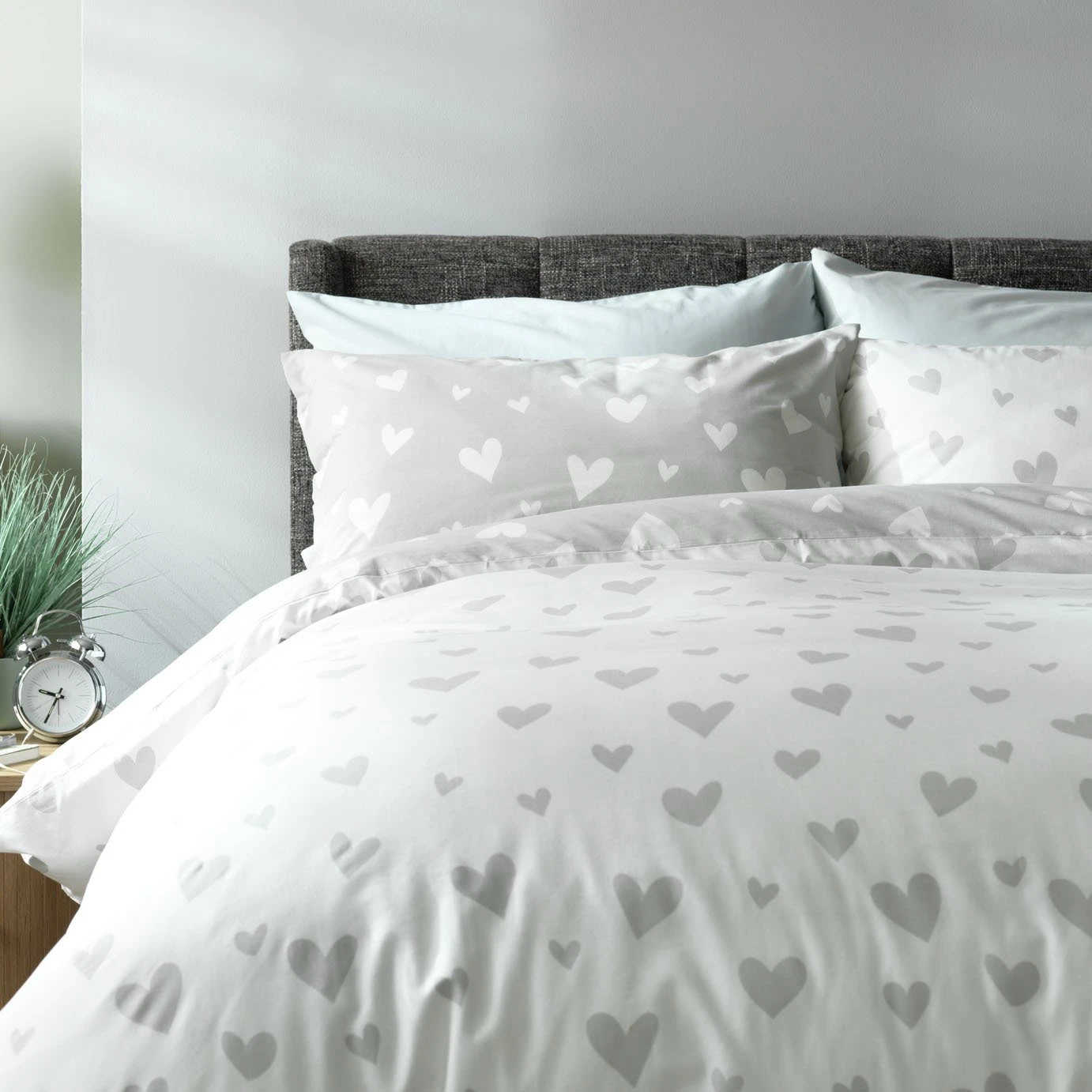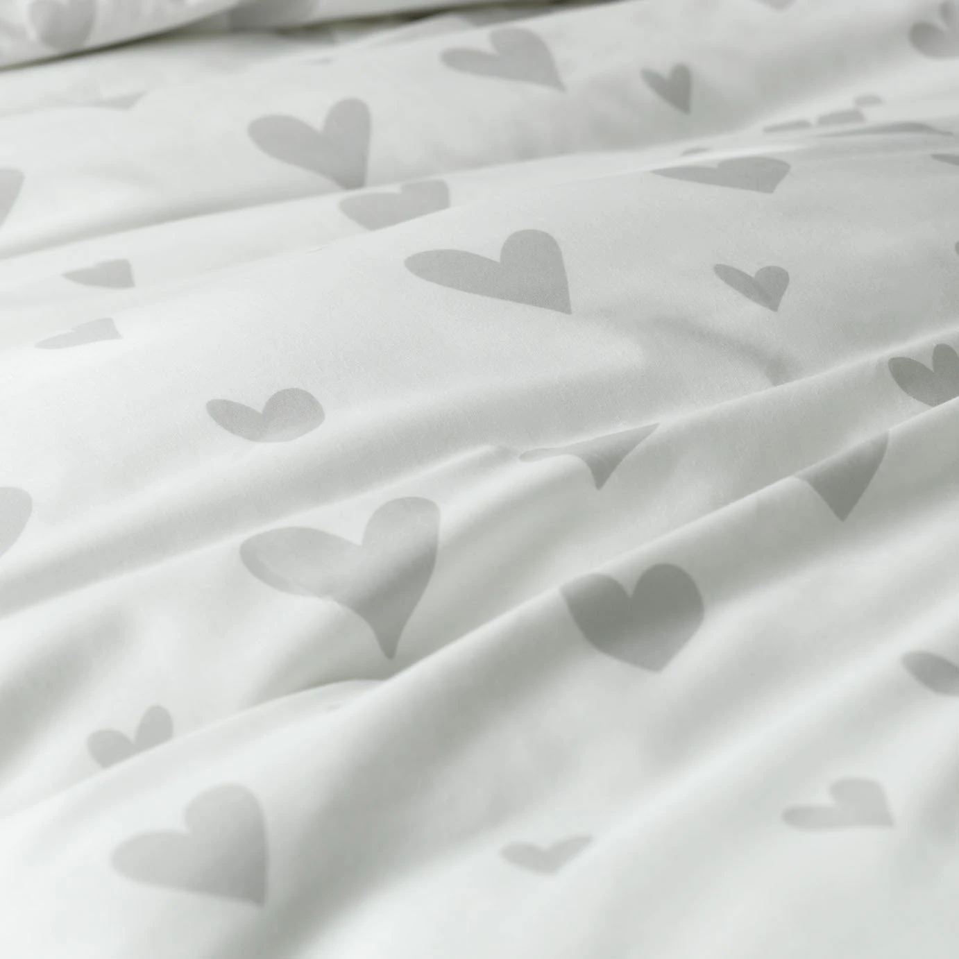 Shh! Don't tell anyone but we've got a bit of a crush on this heart design duvet set. With a delightful flurry of two tone hearts on a crisp, white background, the print is fresh and simple.