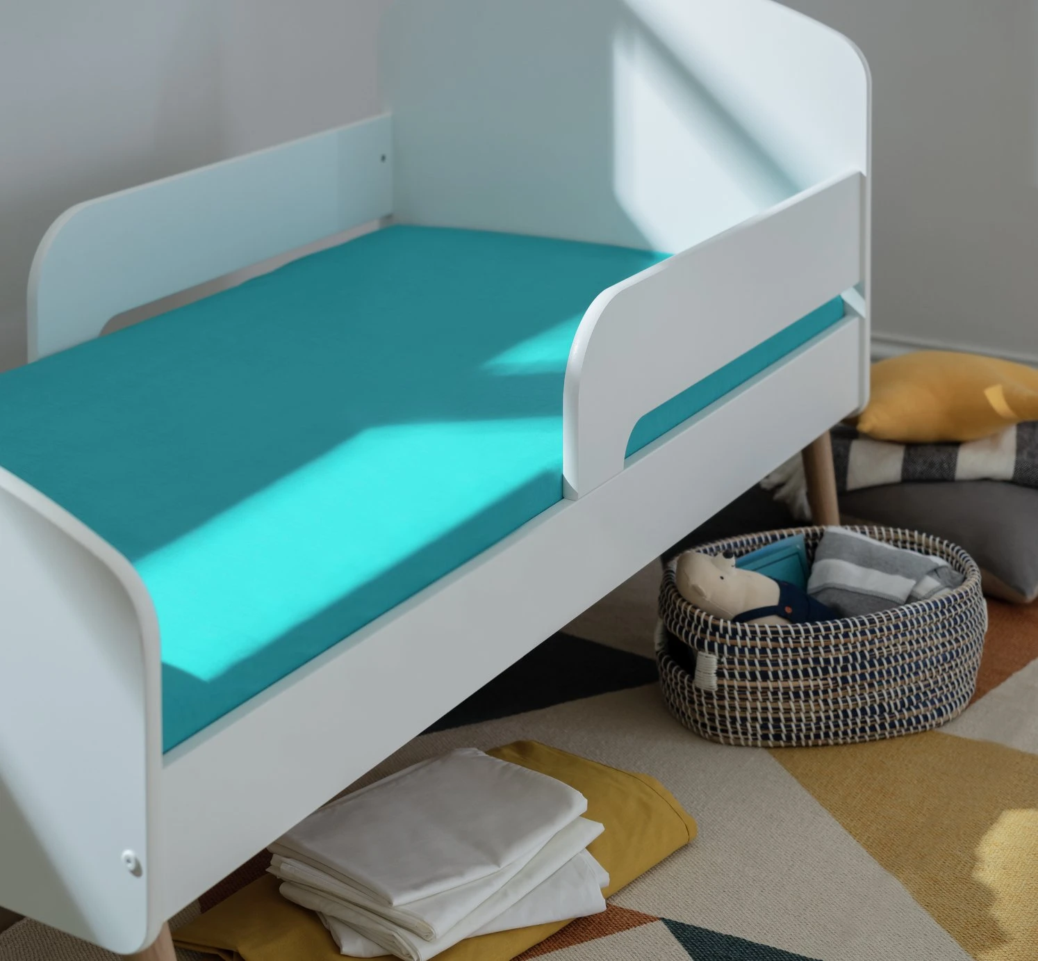 Add a playful pop of color to their bedtime routine. Our dynamic duo of fitted cot bed sheets gives you the option of a plain sheet or one patterned with cheerful building blocks. Made in 100% cotton and designed with elasticated edges for a super snug fit, they're on and off in a jiffy. Handy for a speedy refresh. Easy care, this bright pair are always on hand for a snuggly, cuddly bedtime.