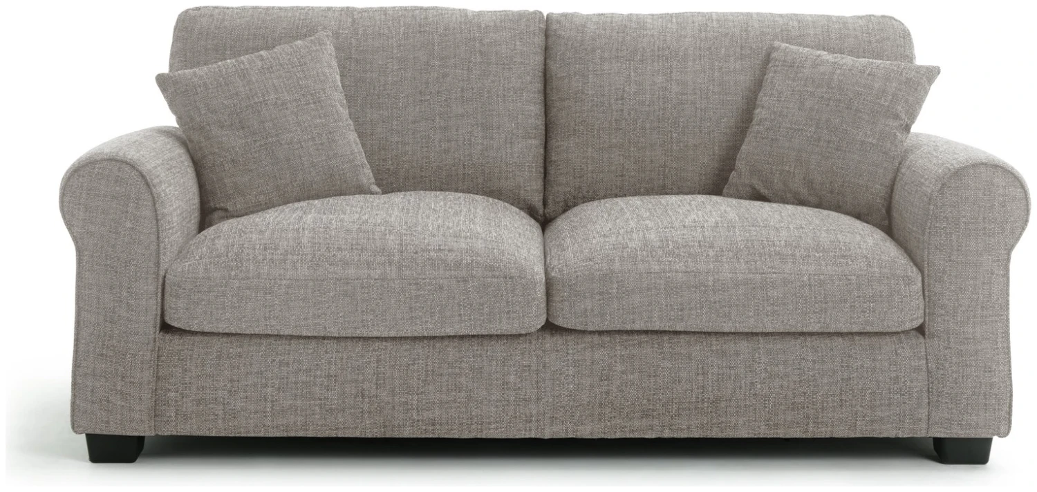 Sink in. Our classic Lisbon sofa features deep seat cushions, generous scroll arms and cushioned backs. Upholstered in a textured light grey fabric. This 3-seater sofa is all about comfort, relaxation and effortless style.