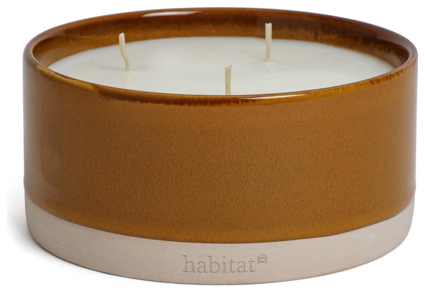 Fabulously floral. The scent of geranium meets a hint of basil in our large, scented candle. Herbaceous notes blend seamlessly with a touch of citrusy spice to create a soft but potent fragrance. A real aromatic delight in a two-tone brown and white ceramic jar.