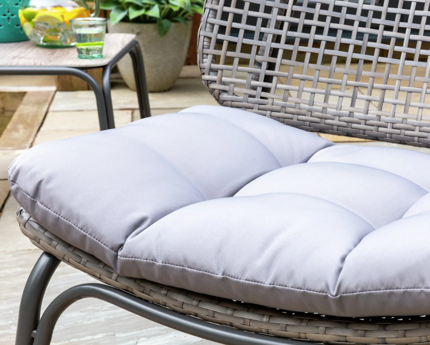 - Remove cushions when not in use and store inside.