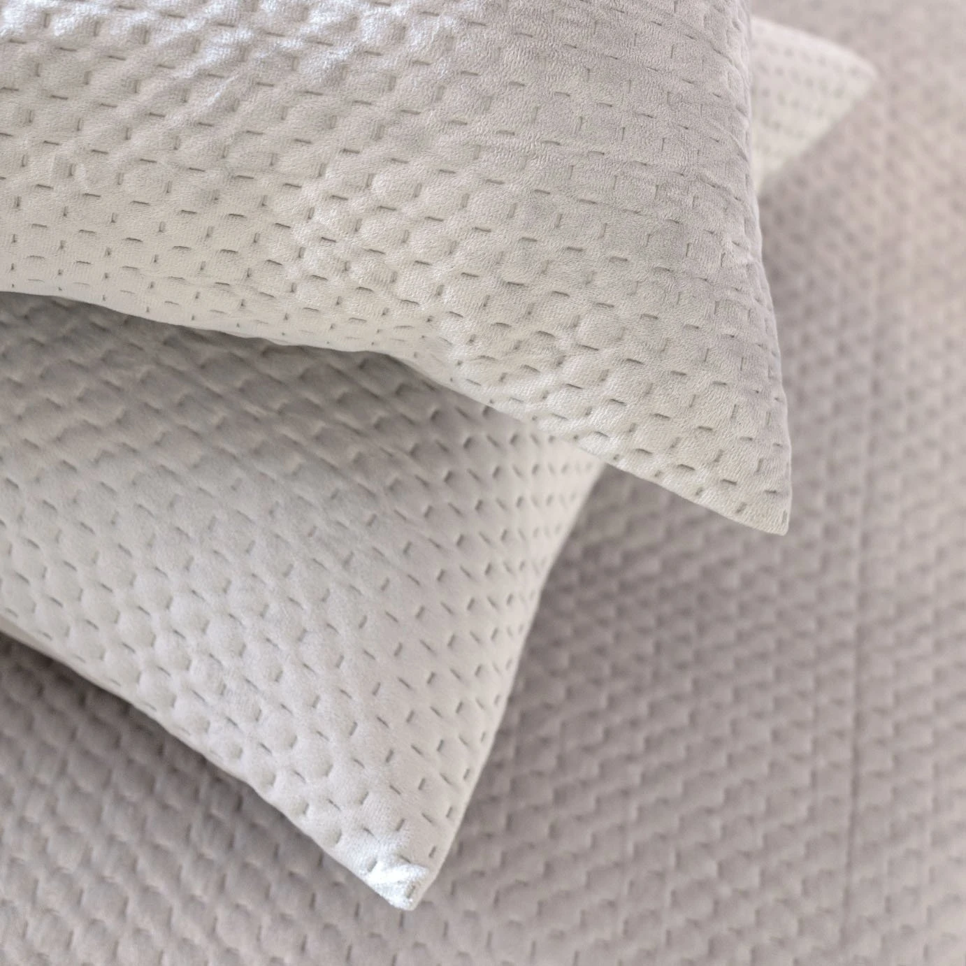 Quality bedding with a quilted touch. With its little velvety puffs of pinsonic plumpness this double duvet set is irresistibly tactile. And don't you just love its boutique hotel look? A glamorous style that makes you want to kick off your shoes and jump into bed. And in light grey, it's totally decor friendly. Plus, the underside is smooth polycotton, so cool and comfortable next to the skin. Who's for an early night?