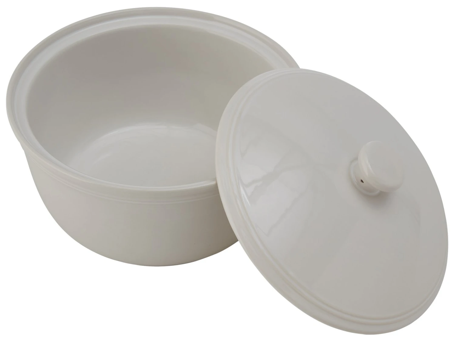Nothing beats a rich and tasty casserole, so kick your cooking up a notch with this 2.5L stoneware casserole dish with lid. Bright white and oven safe up to 250 degrees, it's an attractive addition to your kitchen. The best thing? It's dishwasher safe, so when your feast has finished you don't even have to worry about the washing up. At almost 11cm deep, it's great for family meals and entertaining. Designed to look good wherever it goes, you can serve straight from oven to table with this big dish. It's freezer safe too.