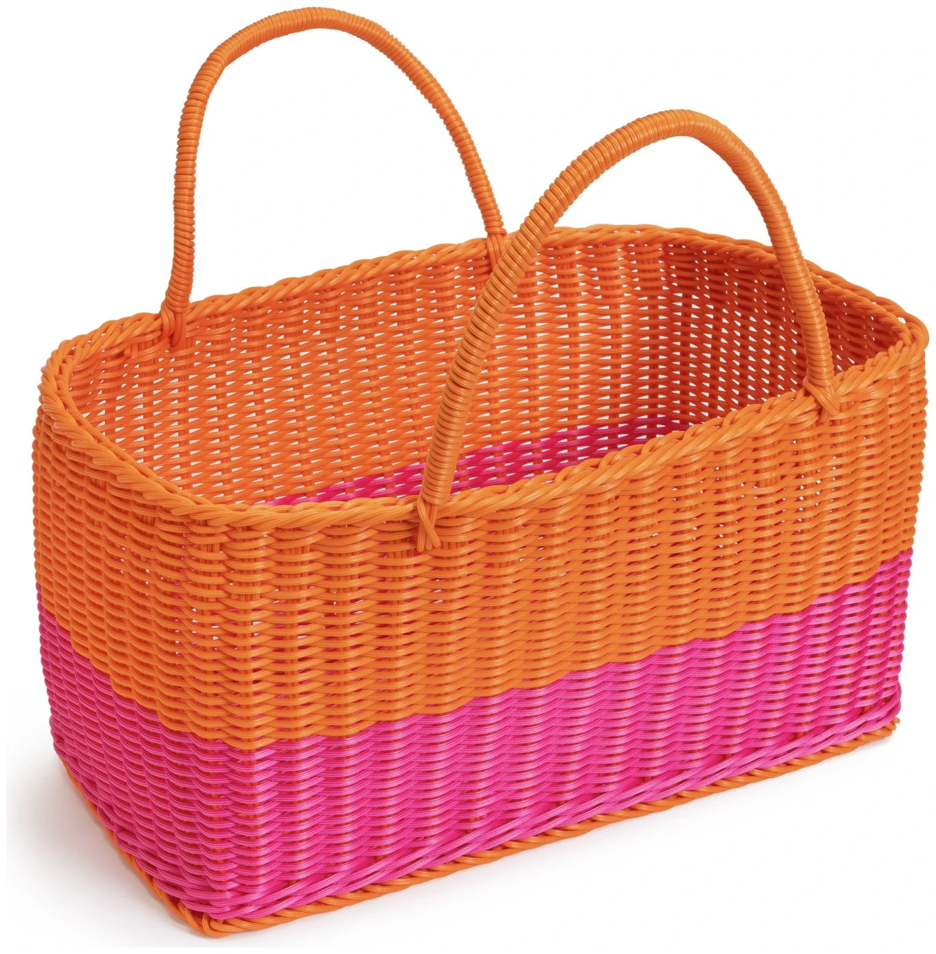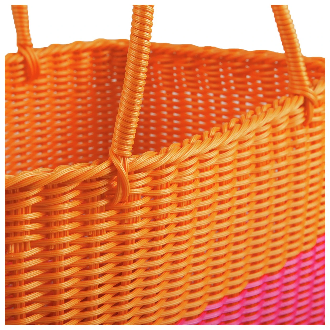 Sandwiches, scones and summer drinks, pack them all into our picnic basket for a sunny day out. With peppy pops of pink and orange, this handwoven hamper is a cheerful sight. Roomy and easy to carry.